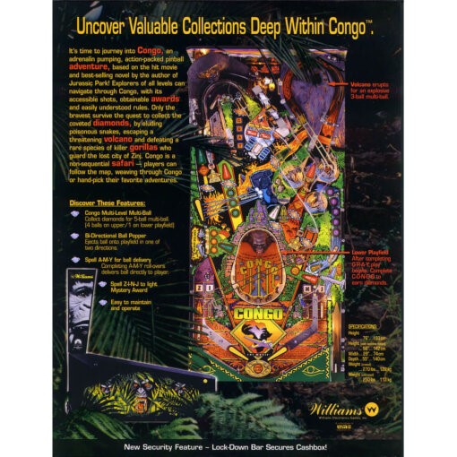 While not inspired directly by any modern film, Congo evokes a sense of adventure and discovery through its unique theme and dynamic playfield design.