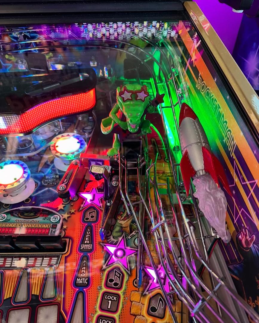 The Elton John™ Collector’s Edition Pinball Machine by Stern celebrates the music, glamour, and iconic hits of the Rocket Man himself. Designed for collectors, music lovers, and arcades, this CE machine delivers fast-paced, entertaining gameplay with vibrant artwork and engaging multiball missions inspired by Elton John’s legendary career.