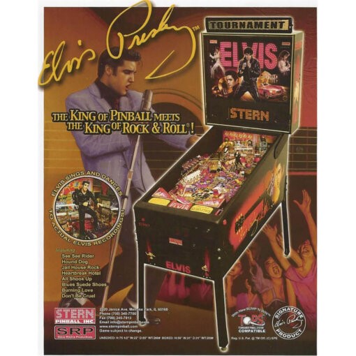 Rock ‘n’ roll meets pinball in a tribute to the King of Rock and Roll with The Elvis™ Pinball Machine by Stern Pinball. This table celebrates the sound, style, and legacy of Elvis Presley, bringing iconic imagery, energetic gameplay, and memorable audiovisuals to your game room or entertainment space.